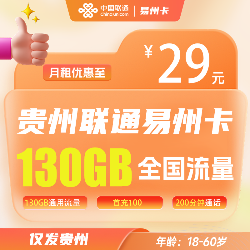 贵州联通卡月租29元130G全国通用流量+200分钟通话仅发贵州,18-60 岁可办首充 100 即可激活,速抢!下单链接:https://kaka.liuxingiot.com/order/inde...全文